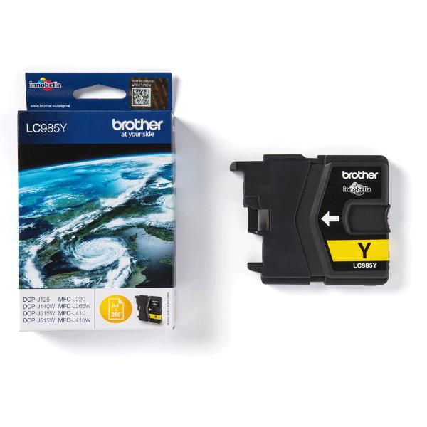 La cartuccia Brother LC985Y di inchiostro giallo – Confezione singola. Stampa circa 260 pagine.Questa cartuccia LC985Y di inchiostro giallo è stata progettata per produrre risultati sorprendenti a ogni stampa. Trattandosi di un prodotto Brother originale, è semplice da installare ed è compatibile al 100% con la tua stampante.Brother prende in considerazione l'impatto ambientale in ogni fase del ciclo di vita della cartuccia di inchiostro, riducendo la quantità di rifiuti conferiti in discarica. Tutto il nostro hardware e le nostre cartucce d'inchiostro sono realizzati in modo che abbiano il minor impatto possibile sull'ambiente. Cartuccia d'inchiostro originale Brother LC985Y: vale sempre la pena di usarlaCaratteristiche principaliLa cartuccia LC985Y stampa 260 pagine conformi con lo standard ISO/IEC 24711Cartuccia d'inchiostro giallo originale Brother di alta qualitàLe cartucce d'inchiostro originali Brother vengono rigorosamente testate per verificare che stampino sempre perfettamente, consentendo di risparmiare tempo e denaroL'utilizzo di questa cartuccia d'inchiostro originale Brother LC985Y protegge la garanzia della stampanteLa gamma di cartucce d'inchiostro LC985 è disponibile come confezione risparmio più economica, che consente di ridurre il costo per pagina - LC985VALBP