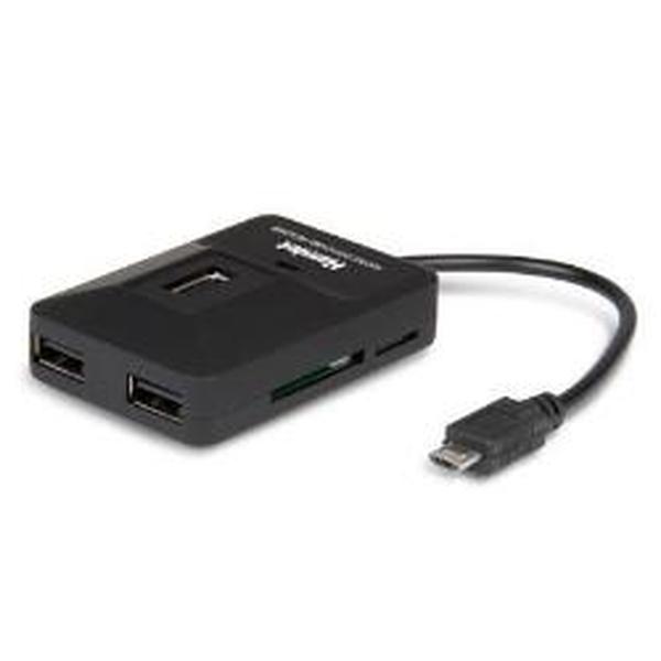 XPADOTGR Micro USB card reader + hub 3 porte Hamlet OTG Card Reader consente di visualizzare e copiare file da memory card su Smartphone o Tablet dotati di porta micro USB. L'hub USB permette di collegare mouse, tastiere, pen drive.SpecificheInterfaccia USB 2.0 con connettore Micro USBLettore di schede con 4 porte: compatibile con schede SD, micro SD, MS e M2Hub USB con 3 porte per il collegamento di tastiere, mouse e pen driveLunghezza cavo: 12 cmCompatibile con SO AndroidFunzione Plug&Play Contenuto della confezioneOTG Card ReaderManuale d'uso