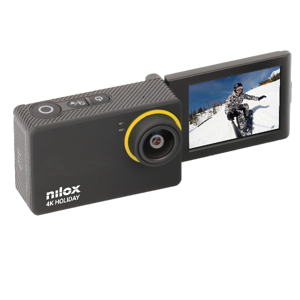 Cambia prospettiva con la action cam Nilox 4K HOLIDAY, l’unica action cam Nilox con flip display. Lo schermo regolabile la rende perfetta per registrare video e scattare foto in modalità selfie e il grandangolo a 170° cattura ogni dettaglio dall’ambiente circostante. Perfetta per ogni attività, grazie agli accessori inclusi nella confezione. La custodia subacquea in dotazione, inoltre, permette di utilizzare la action cam anche per immersioni fino a 30 metri di profondità. Con l’applicazione dedicata è possibile gestire la action cam direttamente dallo smartphone e condividere foto e video.Seconda batteria inclusa per migliorare e prolungare l’esperienza di utilizzo.