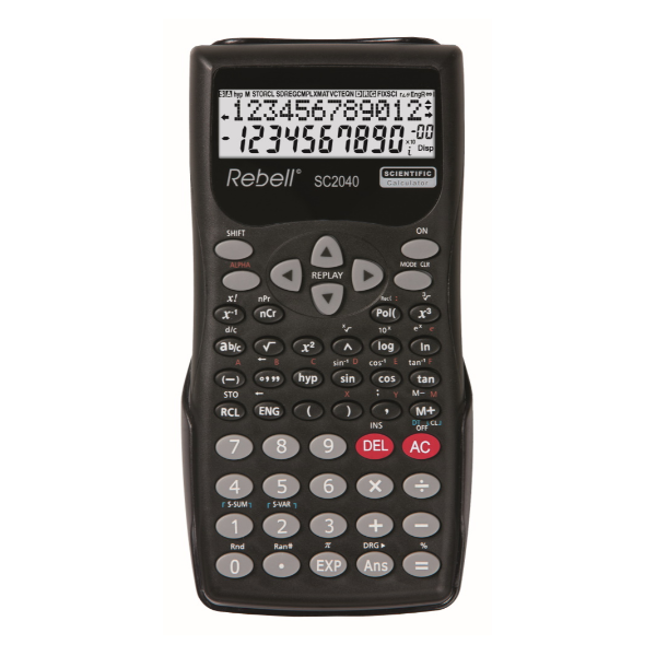 SC2040:Calcolatrice scientifica con 240 funzioni matematiche e display a 2 righe, ideale per studenti delle scuole superiori. Design robusto con custodia rigida protettiva.12 CIFRE (2 LINEE)ALIMENTAZIONE A BATTERIADIMENSIONI: 155 X 70 X 18PESO: 117 gr