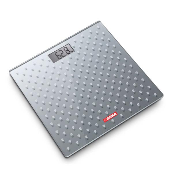Bilancia digitale in vetro, colore grigio.Bilancia da bagno elettronica con pedana in vetro temperato di 6 mm.Dotata di quattro sensori di tipo G (Gravity Sensor) ad elevata precisione che captano eventuali movimenti riducendo il margine di errore durante la misurazione.Funzione di accensione e spegnimento automatico.Caratteristiche tecniche• Portata: max 150 kg (misurazione minima 2 kg)• Precisione: 100 g• Dimensione: 300 x 300 x 19 mm• Alimentazione: funziona con una batteria al litio tipo CR2032 (non inclusa)• Garanzia: 2 anniAlimentazione: 1 x batteria CR2032