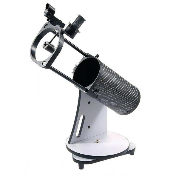 Telescopio Dobson Skywatcher da tavolo, ideale da trasportare e per iniziare ad osservare il cielo. I telescopi dobson sono famosi per la loro praticità e per il prezzo contenuto rispetto al diametro offerto. Sono fantastici per le osservazioni deepsky, ma l'elevata qualità ottica e la buona meccanica ne consentono anche un uso estremamente interessante nelle osservazioni in alta risoluzione. Un dobson è un compagno di osservazioni inseparabile.Caratteristiche principali:-pratico e leggero, si trasporta facilmente;-ottimo come primo telescopio;-specchio parabolico diametro 130mm, focale 650mm;-tubo ottico truss (collassabile);-basamento in legno;-tubo ottico serigrafato con i nomi degli astronomi del passato;-cercatore a punto rosso, oculari Super 25mm (26X), Super 10mm (65X), diam. 31,8mm.-Scheda tecnica:-Schema Ottico: Newton;-Diametro: 130mm;-Lunghezza Focale: 650mm;-Rapporto Focale: f/5;-Ingrandimento max.: 260x;-Trattamento: alluminatura specchi;-Montatura: Dobson;-Treppiede: assente;-Peso totale: 6kg.Contenuto della confezione:1x SKDOBP130;Oculari ed accessori: Super 25mm (26X) e Super 10mm (65X) diam. 31,8mm;Cercatore: red dot.