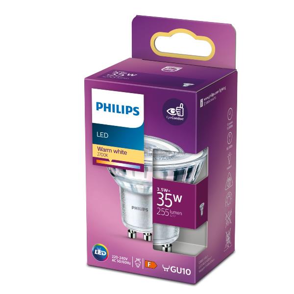Philips Lampada a Faretto Prova la luce LED dicolore bianco caldoQuesta lampadina a LED Philips o€re una luce accattivante,ancora più calda, una durata davvero incredibile e un risparmioenergetico immediato e signi‚cativo. Con la sua originaletemperatura del colore, questa lampadina rappresenta la sceltaperfetta per un'atmosfera intima.Luce di qualità elevata• Luce bianca calda naturale come le lampadine incandescenti