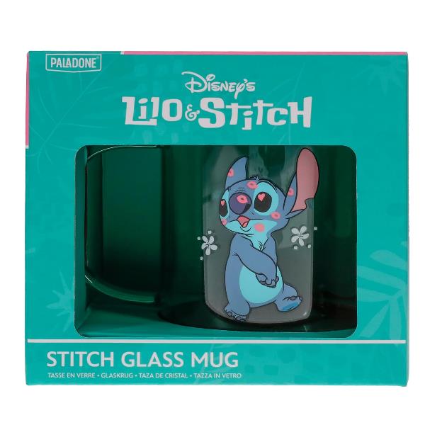 STITCH GLASS MUGTazza di vetro Disney Lilo & StitchLavabile sia in lavastoviglie che a manoAdatta al microonde